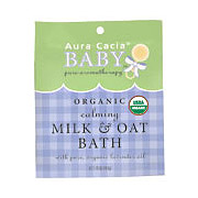 Botanical Name: Ingredients: Organic Milk Powder, Dead Sea Salt, Organic Avena Sativa (Oat) Kernel Powder, Organic Lavandula Angustifolia (Lavender) Oil, Organic Origanum Majorana (Sweet Marjoram) Oil, Organic Chamaemeluim Nobile (Roman Chamomile) Oil, Organic Cananga Odorata (Ylang Ylang) Oil. Directions: Pour desired amount into warm bath water. Suggested Uses: Nourish and calm your baby's skin with this pure-as-can-be formula. Skin-soothing oat and milk powders combine with pure, organic essential oils-like lulling lavender, warming marjoram, and steadying ylang ylang-to soak away tension or simply indulge baby's senses during bathtime. Safety Info: Use only as directed. Excessive use or prolonged exposure may cause irritation to skin. Discontinue use if rash, redness or itching occurs. Consult a health care practitioner if irritation persists or before use if pregnant, suffering from any medical conditions or taking medication. Product Notes: 100% PURE ESSENTIAL OILS * NOT TESTED ON ANIMALS * NO SYNTHETIC PRESERVATIVES, COLORS OR FRAGRANCES * PARABEN-FREE * SAFE FOR WHIRLPOOLS AND SPAS Organic: QAI Certified Organic Common Name: Calming Milk & Oat Bath