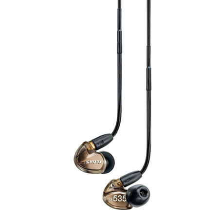 Shure SE535 Metallic Bronze In Ear Headphones with Triple Drivers and Built-In 2-Way CrossoverThese are my favorite earphones. When I travel I always take my SE535 and that says a lot since I own about a dozen sets of high-end earphones. The greatest characteristic of the SE 535 are: The superb, velvety mid-range The built quality. If you ever find yourself needing to impress your boss or someone else, gifting an SE535 will make you look real good. The finish, careful manufacturing and texture of the bronzed color earpieces scream quality. The feel of the earbuds and cable - which are thick, malleable and replaceable, and the super fancy metal box they come in, makes them an unbeatable gift. Best sounding earphones by far if you are into acoustic music, female vocals and light jazz. The SE 535 earphones are made by Shure in their own factory in Asia. This guarantees the utmost quality in the manufacturing phase. They feature a 2-way crossover which divides the frequency range in two. The upper and higher mid range are directed to the single driver which is specialized in handling the highs and mids such as a tweeter and mid-range speaker would do. The other bottom part of the sound frequency, lower medium range and the low (bass) frequency, the SE535 routes to their specialized dual "woofers". Yes, they have not one, but 2 low frequency drivers which are designed and located within the earpiece to maximize bass without creating an unbalanced sound. This Shure "signature running" is what makes the "Shure sound" which competitors could never replicate. When I visited their laboratory in Evanston, Illinois some years ago everything came together and I immediately understood why something so small could sound so incredible. Research and development are not taken lightly by this almost 90 year company. The SE535 is the company's flagship. They outperform my $700 full-size headphones and actually made me stop using full-size headphones. The case they come with is also very useful and are perfect for travelling. When going through airport security I drop them inside my shoes and then I put them back in my ear canals which serve to alleviate the stress of going through airport terminals, crying babies, running route children (nothing personal - I have two kids - but I make them behave in public spaces), and flying. When flying there are always the chatty folks, with the big voice, the crying babies, the repetitive unnecessary announcements and engine noise, to all of which I find the cure in the same antidote: my SE535. If you decide to get them I hope you will love them as much as I do mine. You should give them at least 10-15 days for them to sound their best. Specially the bass which will come only after you get a good seal with them which can take some time as you must try all different ear tips included with the SE535 to find the "right" size and design for you. If you decide to buy them I also hope you will support our American, small family owned business and get them from Earphone Solutions. We are proud Authorized Shure Dealers since 1996 which means that when you buy from us you are fully covered under Shure's awesome warranty for 2 full years. If you ever need service or repair all you will need is a copy of our invoice. If you lost them, don't panic. Simply drop us an email and we will send you your proof of purchase within the same business day of your request. If you come across a lower price in the US or Canada from another authorized dealer, I assure you we will beat that. And most of the times we will even beat eBay resellers. Amazon? We beat their prices every day! Just give us a call at 1-888-473-9661.My name is Flavio and I own FMA Solutions, the operator of Earphone Solutions. We are located in Orlando, Florida and we ship to all North America on the same day you place your order. If you ever need any help with your new earphones, please feel free to drop me an email and I will be glad to help you.